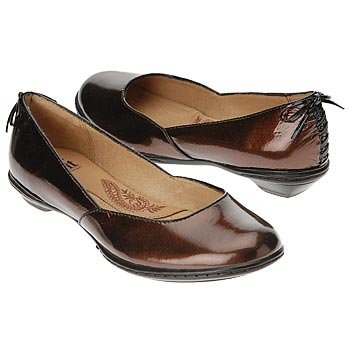 Give yourself some stylish support with the sleek Sofft Pilar flat. Shining patent leather upper in a slip on dressy casual flat, with a rounded toe, stitching and side seam accents, and low-cut sides for added flex. Heel contrast colored crisscrossing laced detail with bow accent. Smooth lining, cushioned comfort insole with supportive flexible midsole. Traction patterned outsole, low 3/4 inch heel.