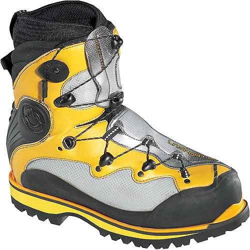 When you're planning an assault on the Golden Tower, be sure to take along La Sportiva's Spantik Boots Built with everything from ultra-lightweight materials to an integral gaiter and Fast Lacing System, this boot offers unimpeachable mountaineering performance without excess weight Features: Built for durability and warmth, the inner boot features thermo-formable, breathable, perforated foam Quit fumbling and get going to the exterior shell is step-in crampon compatible High-durability PE construction won't crack or give under even the most heinous conditions Keep spindrift out of your boots by cinching up the integrated gaiter Don't give up hard-earned warmth just to lace your boots to Fast Lacing System is one-hand adjustable for on-the-move micro-tuning without removing your gloves Specifications: Average weight per pair: 5 lb 1 oz Outer Boot: synthetic Inner Boot: polyethylene Outer Last: board lasted Inner Last: slip lasted Midsole: EVA Insole: 5mm carbon fiber with polyester and aluminum inserts Outsole: VibramSpecifications based on size 40